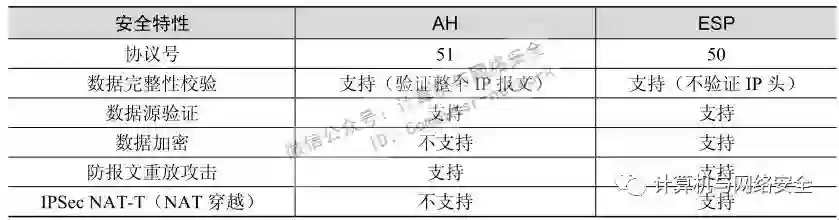表1给出AH协议和ESP协议在一些参数特性上的比较。