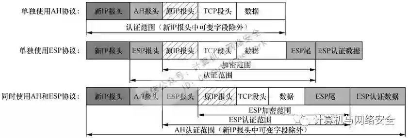 当然,因为IPSec在对数据进行封装时有两种不同的模式(传输模式和隧道模式), AH和ESP协议头在封装后的IP数据包的位置不完全相同。