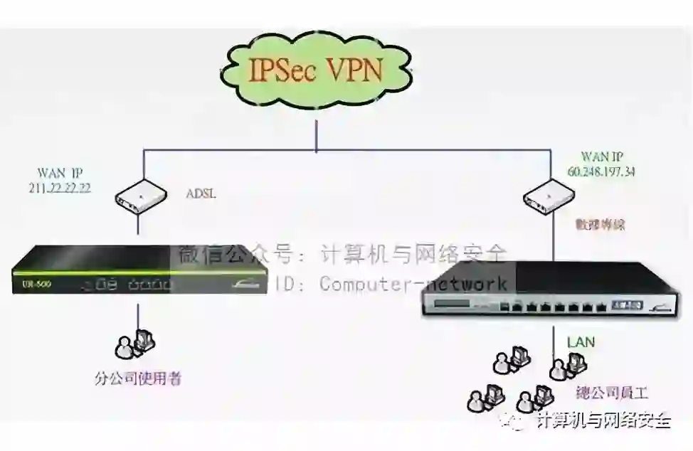 IPSec VPN是一项应用最广泛,也最为重要的一种VPN解决方案。它最大特点是安全性高,主要体现在两方面:一是IPSec VPN隧道是要经过一整套安全参数(SA)协商,并得到隧道两端共同认可后才能建立的,即VPN隧道本身也是受保护的;二是在IPSec VPN中传输的数据不仅要经过加密处理,还支持数据完整性验证和数据源身份认证功能(支持像预共享密钥、数字证书和数字信封等多种认证方式),进一步确保隧道端点所接收的数据是没有被非法篡改,而且来源是合法的。