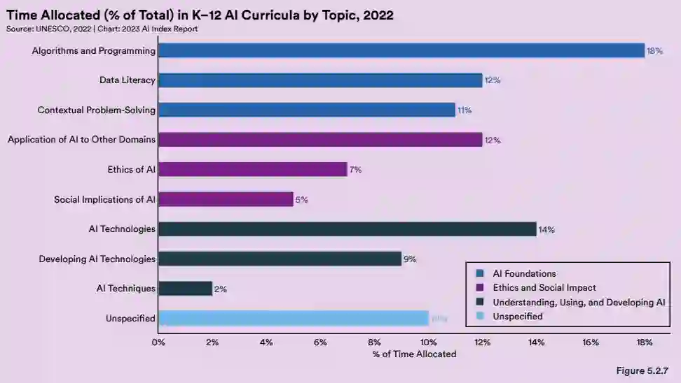 截至 2021 年,包括比利时、中国和韩国在内的 11 个国家 / 地区已正式认可并实施 K-12 AI 课程。