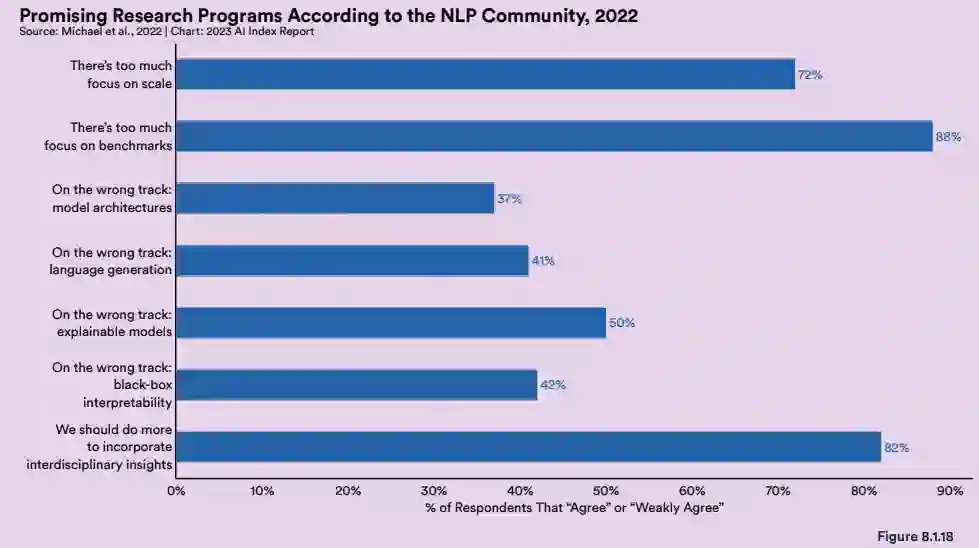 值得注意的是,近期有几个大模型爆火的自然语言处理处理领(NLP)域,大多数研究者都认为 NLP 领域存在一些普遍问题。