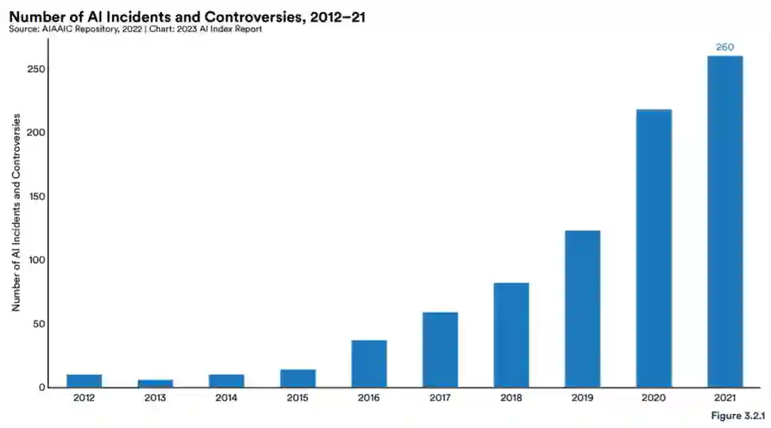 根据追踪人工智能道德滥用相关事件的 AIAAIC 数据库,从 2012 年开始,人工智能事件和争议的数量增加了 26 倍。这种增长既证明了对人工智能技术的更多使用,也证明了对滥用可能性的认识。