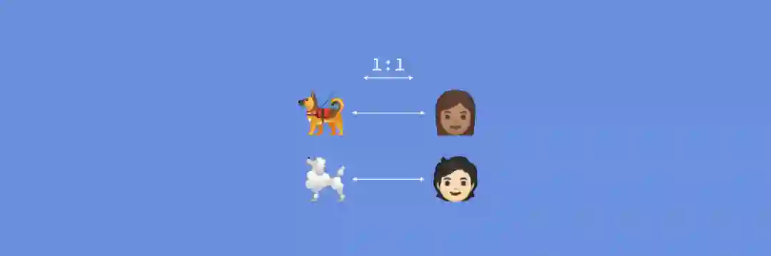 假设我们生活在一个每个人只能拥有一只狗,且每只狗只能有一个主人的 “悲惨世界” 中,这就是一对一关系。如果要以关系型数据库的方式来反应它的话,我们可以创建两张表: