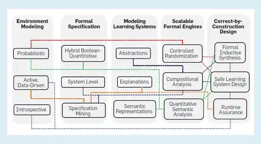 硬件和软件系统形式化方法的有效性,是由底层“计算引擎”的进步推动的——例如,布尔可满足性求解 (SAT)、可满足性模理论 (SMT) 和模型检查。鉴于 AI/ML 系统规模、环境复杂性和所涉及的新型规范,需要一类新的计算引擎来进行高效且可扩展的训练、测试、设计和验证,实现这些进步必须克服的关键挑战。