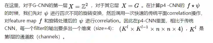 到某个对称性群 G。而且推广以后,G-CNN卷积层对于该群的对称性变换操作具有等变性质。