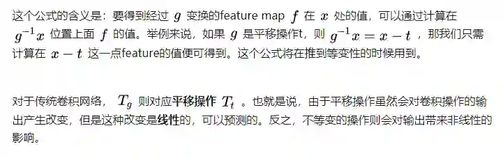 简单的例子,就是当目标出现在输入图片中的不同位置,输出的feature map应该是只是进行了平移变换。