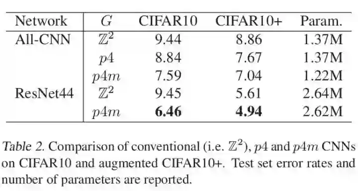 因此,在实际应用上,G-CNN在一些涉及到图像对称性的问题上,可以作为一个标准卷积的增强工具从而增强效果,若有数据增强则效果更加。