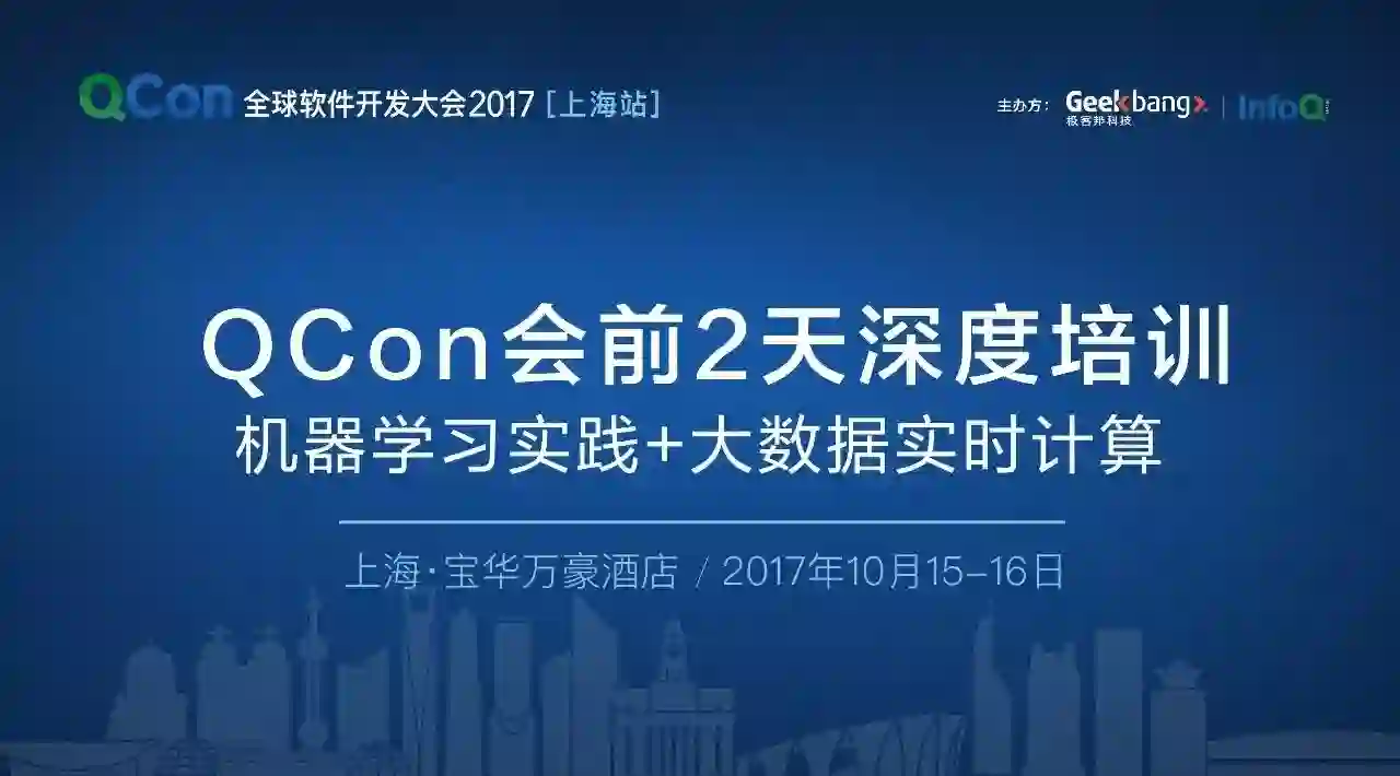 深度培训在 QCon 大会前 2 天,10 月 15 日 -16 日在上海宝华万豪酒店举办,培训包括 10 小时的授课和 2 个小时的提问交流,沉浸式学习热门技术,深度培训机器学习和大数据实时计算知识。