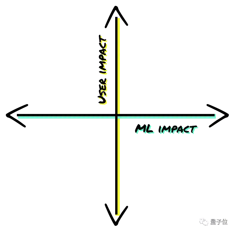 通过这个坐标系,我们能找出哪些想法比较有影响力,哪些想法依赖于ML来实现。在前面的对话中,你就应该开始和开发人员合作了,如果还没有,从这里开始也不晚,让他们来衡量这些想法在实际中能否用机器学习解决。