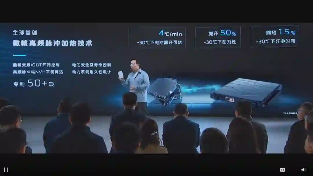 搭配高频充放脉冲电池自加热功能,EPA1 平台的车辆可以在零下 30 度的环境中维持电池性能,相比不带这一功能的电池系统提升 50%。电池 BMS 接入云平台管理,保证电芯安全性。
