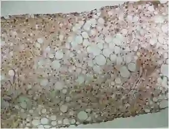 脱蜡水化的目的是使组织恢复到固定后的状态,暴露抗原以便与一抗结合。通常用二甲苯或二甲苯替代物脱蜡,再用乙醇梯度洗脱二甲苯。若脱蜡和水化不全会引起染色不均匀(如下图)、产生非特异性背景着色等问题。脱蜡不足是免疫组化失败的最常见原因,原则上要彻底、完全脱去切片上的蜡。