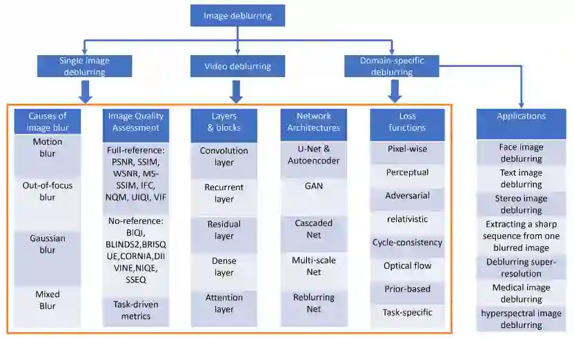 2. 讨论了近些年基于深度学习在图像去模糊领域中取得的进展,对当前的深度去模糊方法进行全面回顾。