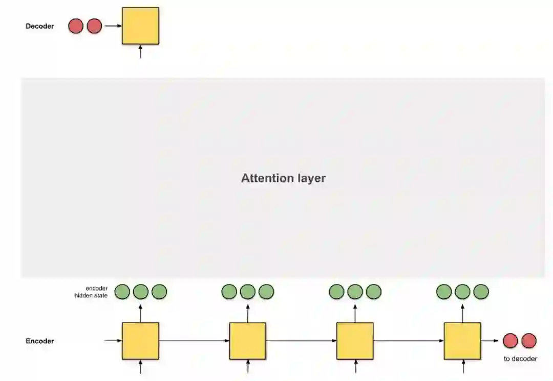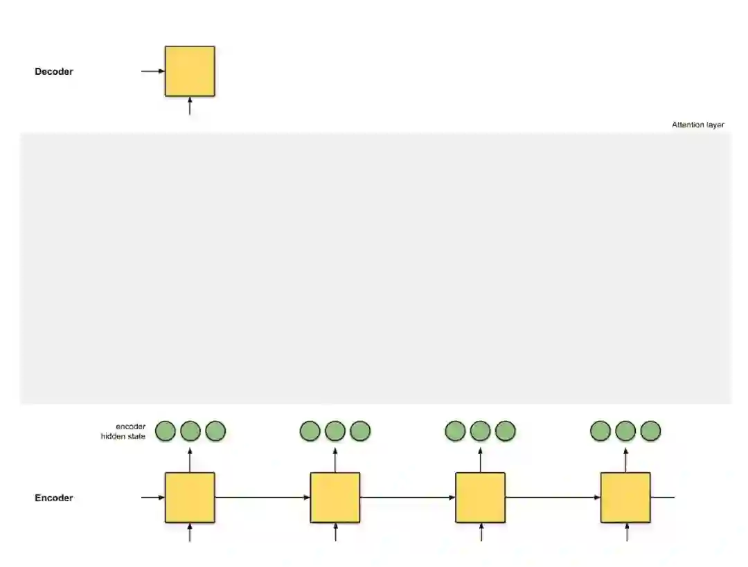 注意力是编码器和解码器之间的接口,它为解码器提供每个编码器隐藏状态的信息(图 0.3 中的红色隐藏状态除外)。通过此设置,模型能够有选择地侧重输入序列的有用部分,从而学习它们之间的 alignment。这有助于模型有效地处理输入长句 [9]。
