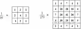 让我们举个例子来理解一下高斯滤波,如图3-5中左边的高斯滤波器,其中心点4我们可以把它看成是'主人公',其周围的点看成是'邻居',噪声我们把它看成是'坏人',现在我们假设这9个人里面,有一个人是'坏人',我们也知道坏人是肯定会说自己是好人的,但要是我们有投票机制决定一个人是否为'坏人'呢,其中权重(weight)则对应每个人说话的分量,投票机制就为我们所说的加权平均策略,现在我们可以很直观地发现,其实高斯滤波就是一个会考虑其周围像素点的滤波器,即使当前点位为噪声点,高斯滤波器也会通过周围点的灰度值来制约噪声的影响,生成高斯滤波器与滤波的代码如下:
