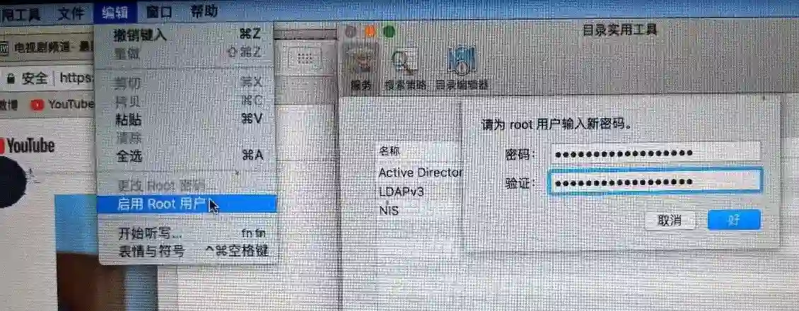 在弹出的菜单中点击「打开目录实用工具」。在新弹出的窗口里点以下锁按钮,输入用户名密码,以进行修改。