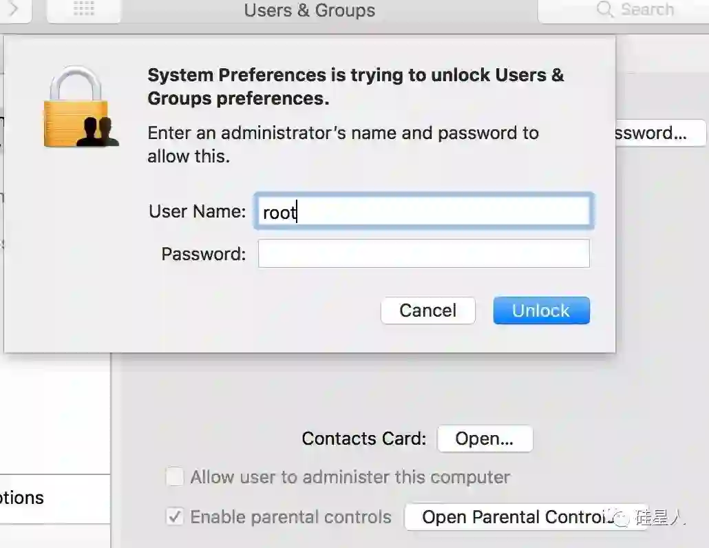 硅星人可以确定,这一漏洞其实不是有意而为之,应该实属负责这部分的程序员(也可能是实习生)脑子进水——因为,mac OS 里其实隐藏了一个最高权限的账户,用户名就是 root,是留给苹果维修人员和 IT 人士的,一般用户不会看到。而今天这个漏洞的情况,应该是苹果自动打开了该账户,留了空的密码,还没告诉用户。(文末有补上漏洞的教程)