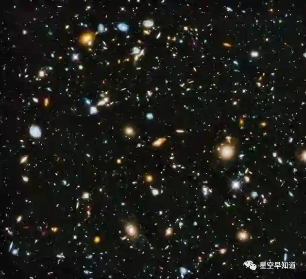 哈勃超深场图像。这里的每一个亮点都是一个星系。为了得到这个认识,我们在中间走了很长很长的路(来源:NASA)