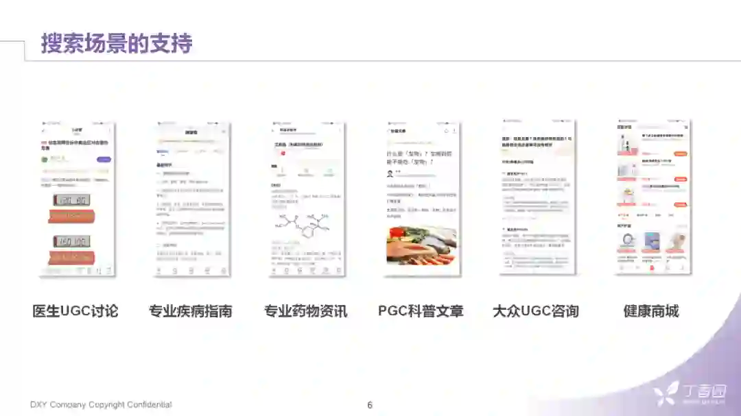 搜索作为丁香园的基础服务,需要支持多个社交与工具类的应用,主要包括:丁香园论坛、用药助手、丁香医生、丁香家商场等主要App。处理的文本数据需跨越大众和专业医学这两个领域,涉及的业务线也需处理不同的场景。