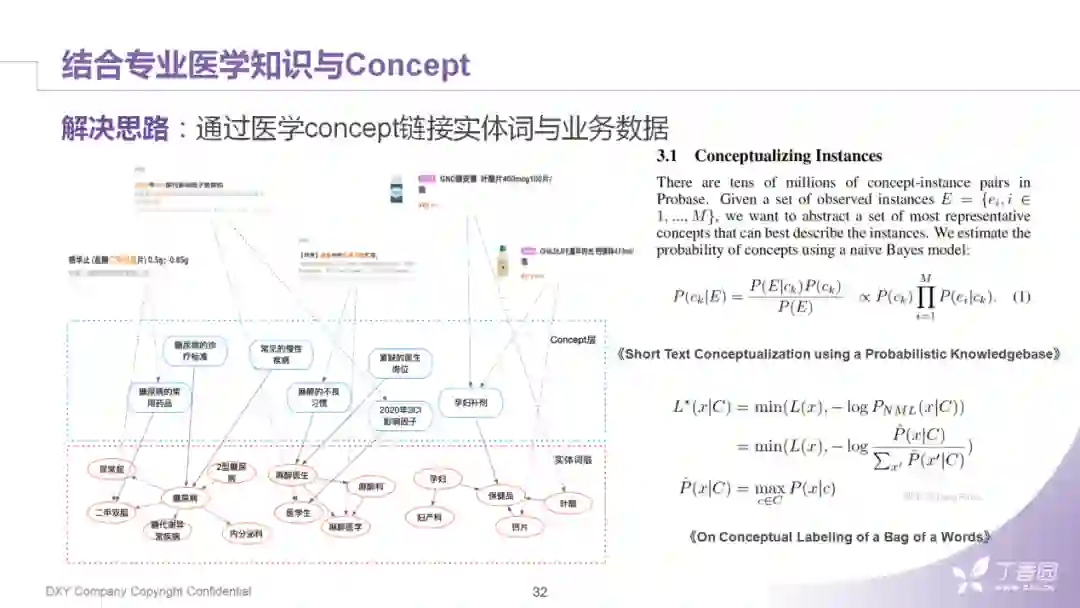 第二点是从用户行为日志中挖掘出concept,然后把这些concept作为跨越业务数据和底层专业医学知识的语义媒介。