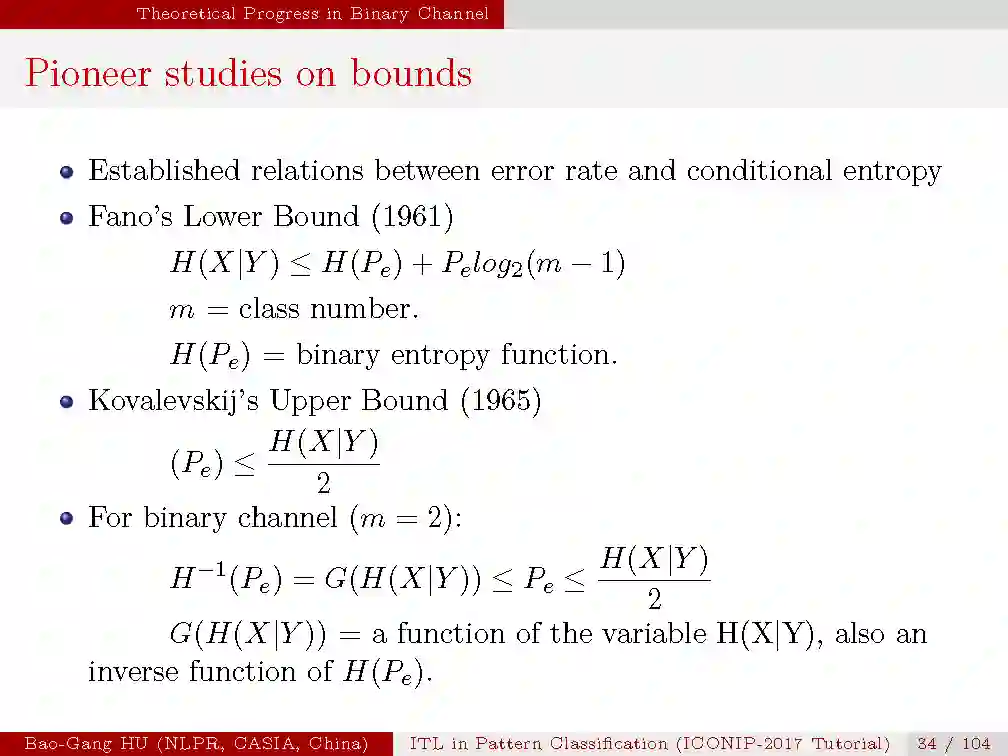 信息论中已有的上界与下界计算公式。它们适用于m类有限类别,