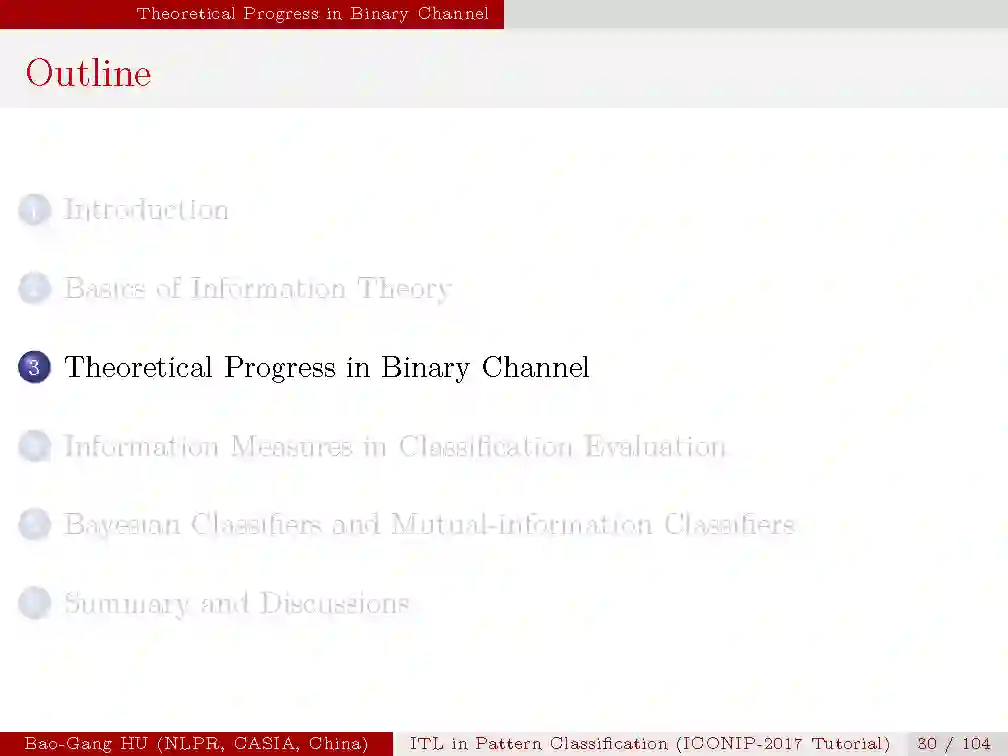 本次tutorial的目的是,1.介绍信息学习理论与模式识别的基本概念与原理;2.揭示最新的理论研究进展;3.从机器学习与人工智能的研究中启发思索。由于时间有限,本次只是大概介绍一下本次tutorial的内容,后续会详细介绍每一部分。
