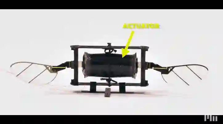 迄今为止,主要的替代方案是采用由压电陶瓷材料制成的小型刚性执行器。压电陶瓷使第一代微型无人机得以飞行,但它们非常脆弱。Chen 设计了一种更具弹性的微型无人机,采用软致动器,而不是比较硬的、易碎的致动器。