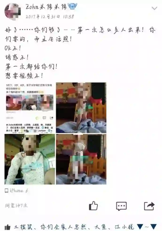 物以类聚,人以群分,一个变态的朋友圈能正常到哪去,况且男子自己都不觉得和幼童舌吻有什么不妥。