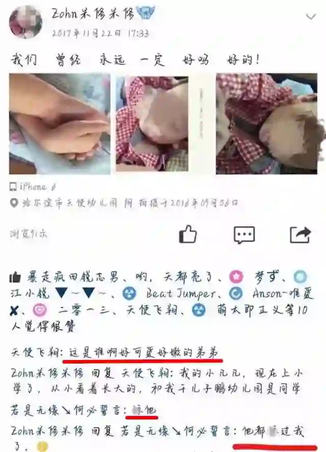 很快,变态的微博也被网友扒了出来,和空间同名(现已被封号),早在2016年9月就发过类似照片,其中有一条显示的定位是哈尔滨某幼儿园。