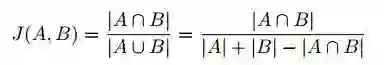 在图像分割任务中,由于图像由像素点组成,在离散问题中,我们可以将jaccard相似系数改写为: