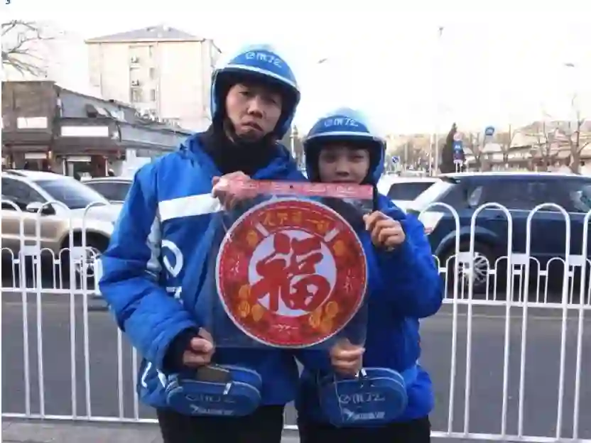 最后,当两人拍个合照给大伙拜年时,这对夫妻依然害羞得不愿牵手。“我们会一直在饿了么干下去的。”赵金祥,“我们今年春节继续一起为大家送餐,两个人搭伴过年,也挺幸福,希望家人们放心。”
