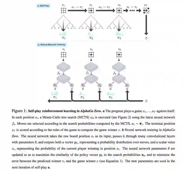 从AlphaGo Zero的论文中,描述的Self-Play和Neural Network Training,我们看到最终状态St是需要根据围棋规则来计算胜者z的,实际上,用模拟(搜索)产生了一个(或是几个)训练样本(棋局)。