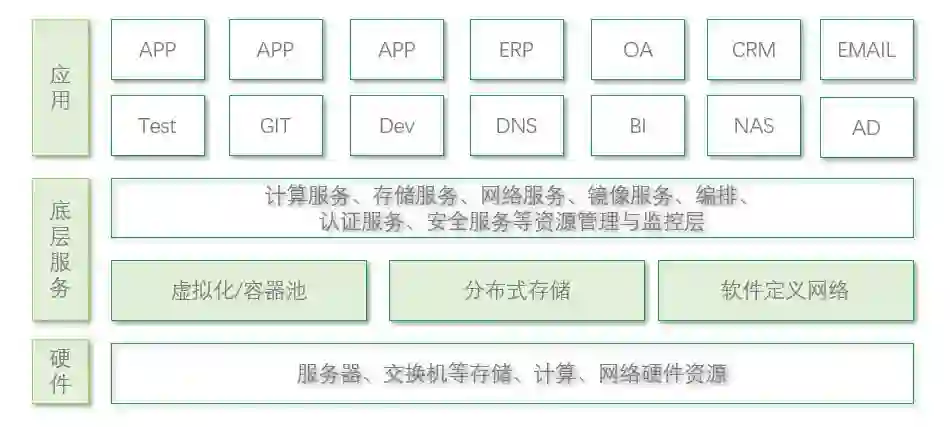 简单讲,就是当业务需要,数据中心可以在数分钟内增加或减少业务所需要的计算、存储、网络等资源。再简单讲,就是随时增加或减少可以安装部署业务应用软件的服务器。