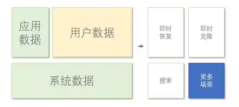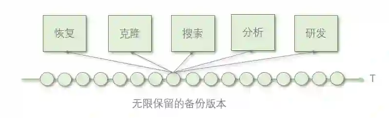 区别与云自己的快照,该能力可以基于任何历史点执行任意多次的恢复、克隆、读写等。