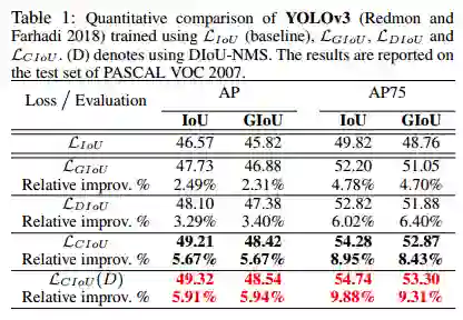 然而,anchor框和目标框之间的长宽比的一致性也是极其重要的。基于此,作者提出了Complete-IoU Loss。