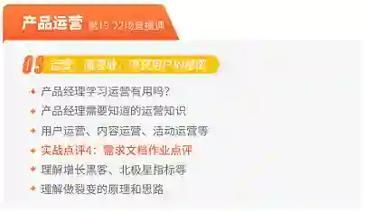 《90天产品实战班》课程内容以互联网产品经理完整的工作流程为主线结构。从行业分析-竞品分析-需求挖掘与分析-产品设计-项目管理-产品运营,体系化地讲解整体知识结构,全方位覆盖产品知识,内容完整。具体如下: