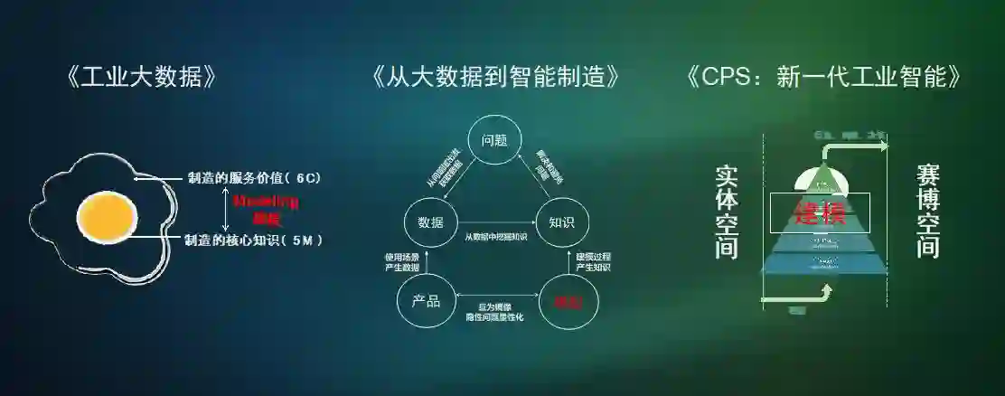 在《从大数据到智能制造》一书中,李杰教授提出从大数据到智能制造最核心的部分是“问题-数据-知识”之间的关系:从问题中不断获得数据,再利用建模的方式从数据中获得知识,之后再反馈到问题域里去解决或者避免问题。这三者间如果可以循环迭代,就能够产生一个新的生态。产品对应数据,知识的载体就是模型。从产品到模型之间,如果能够建立模型,就相当于它们之间可以互为镜像,相互的迭代。