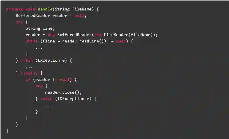 Java 7 中引入了 try-with-resources 语句,该语句能保证将相关资源关闭,优于原来的 try-catch-finally 语句,并且使程序代码更安全更简洁。