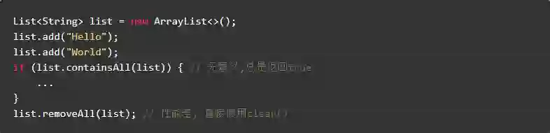 在 java 集合类库中,List 的 contains 方法普遍时间复杂度是 O(n) ,如果在代码中需要频繁调用 contains 方法查找数据,可以先将 list 转换成 HashSet 实现,将 O(n) 的时间复杂度降为 O(1) 。