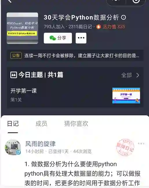 5、加入作者组建的打卡圈子,30天学会Python数据分析