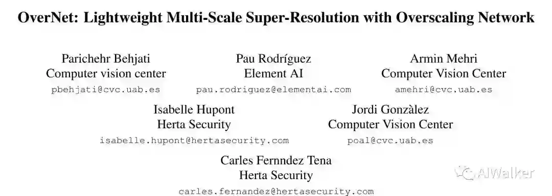 DCNN在超分领域取得了前所未有的成功,然而基于CNN的超分方法往往存在计算量过大的问题,同时大多模型仅能处理特定超分比例,进而导致泛化性能缺失,提升了内存占用需求(注:这里指的是模型部署过程中的模型大小)。为解决上述局限性,作者提出了OverNet,一种轻量型CNN网络用于单模型任意尺度图像超分。首先,作者引入一种轻量型递归特征提取器,它通过跳过链接、稠密连接进行特征的重复与有效应用;然而,为最大化特征提取器的性能,作者提出了一种高精度重建模块,它可以轻易嵌入到现有超分网络中并改进性能;最后,作者引入多尺度损失函数并获得了跨尺度泛化性能。