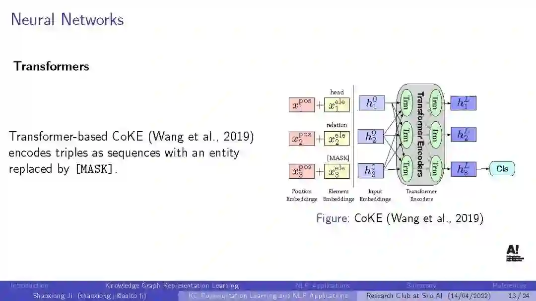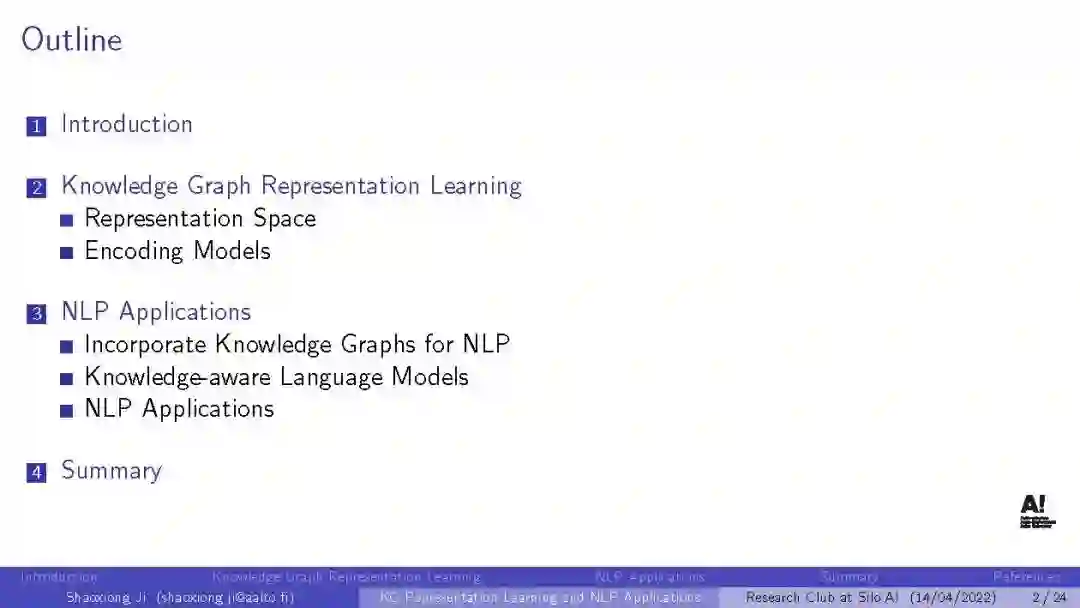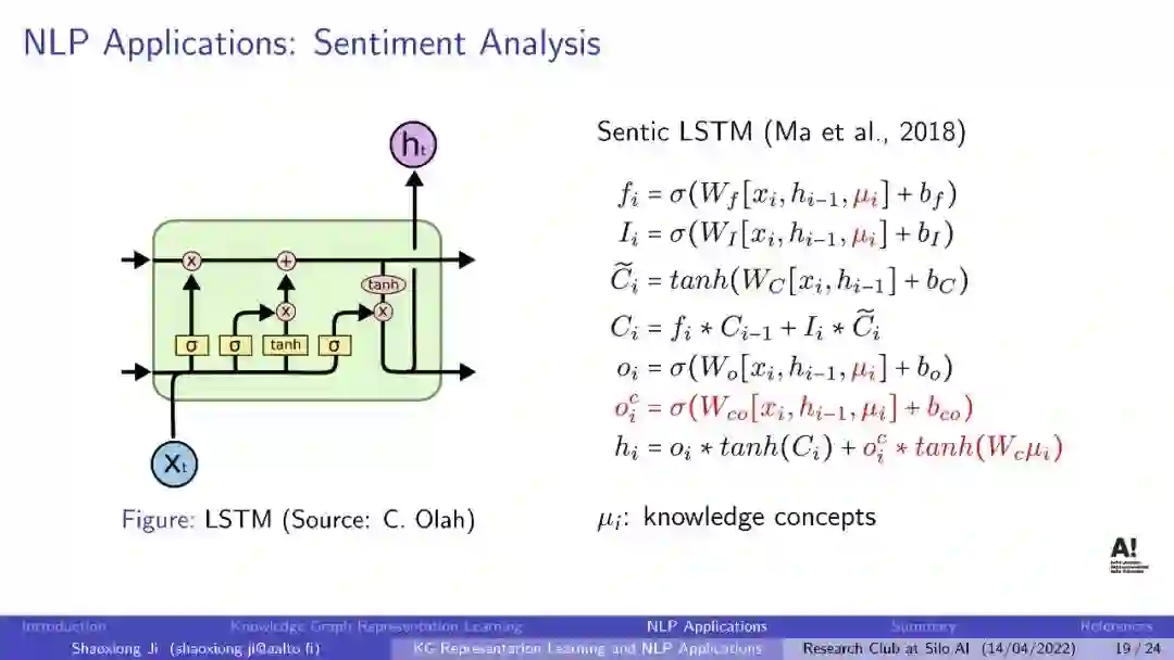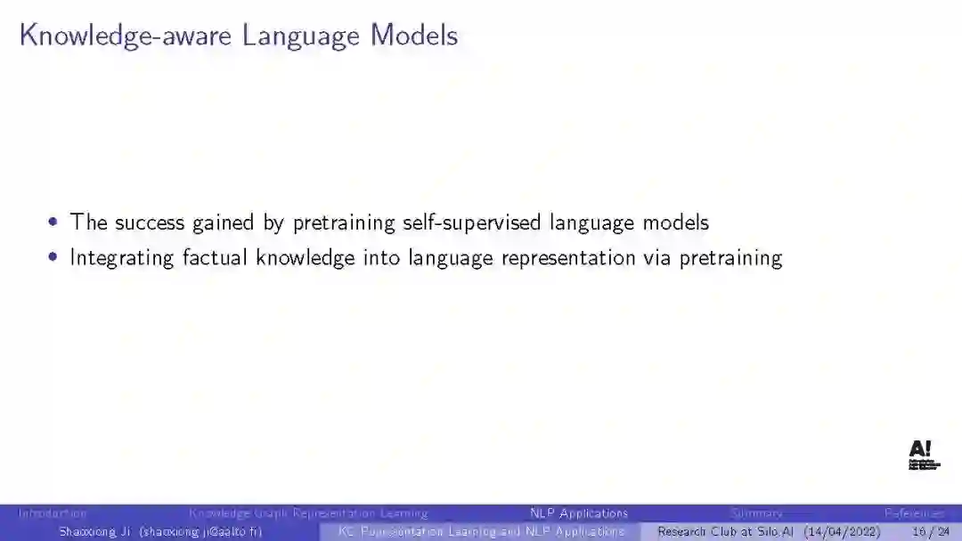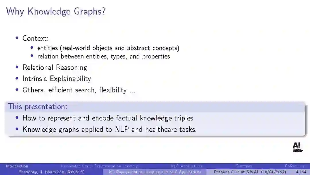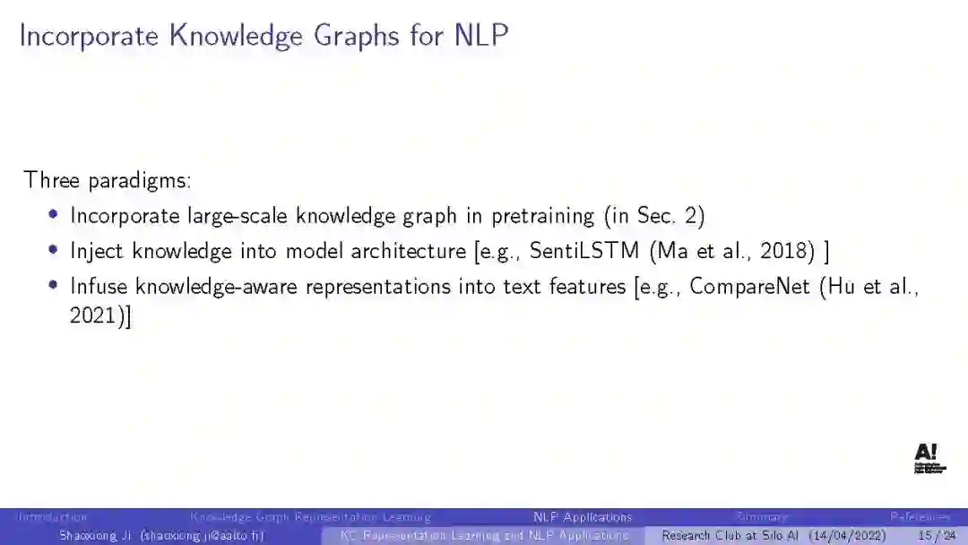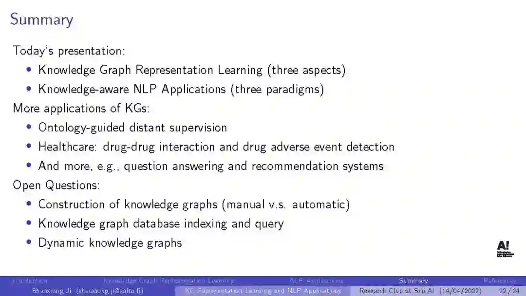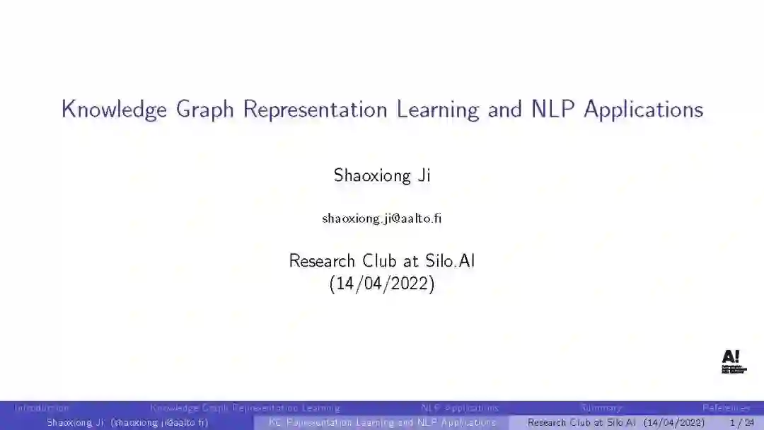 来自阿尔托大学计算机科学系博士研究生Shaoxiong Ji的《知识图谱表示学习与NLP应用》。