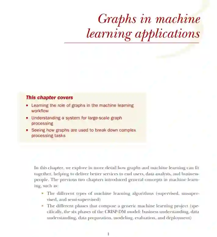 第3章讨论了图在机器学习中的应用。我们将介绍机器学习工作流中的图形技术,包括数据源、图形算法和数据可视化。还讨论了作为处理模式的图形和图形定义的工作流,并分别给出了具体的示例。