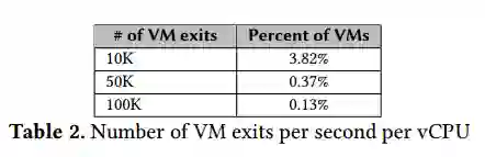 我们采样了30万个虚拟化实例的运行数据,发现每秒1万次以上VM-Exit的实例达到3.82%,甚至还有不少每秒超过10万切换的实例。