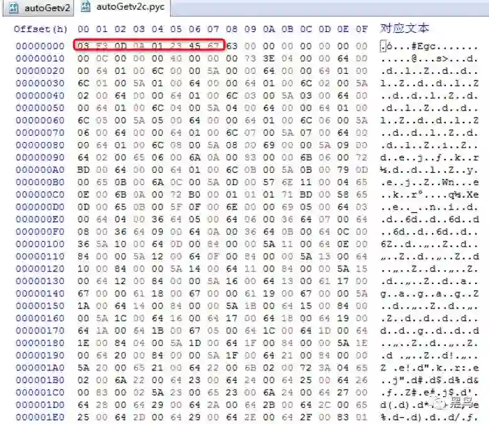 添加pyc文件头: