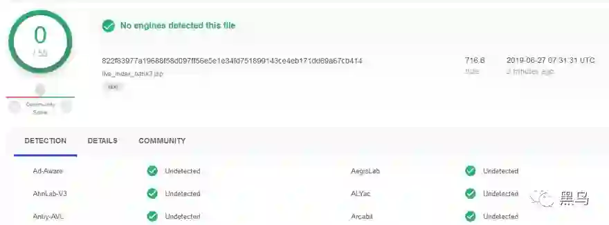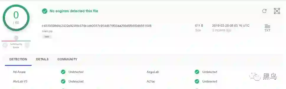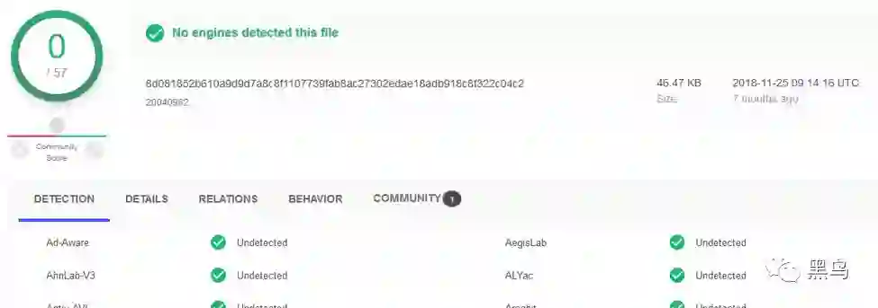 通过 virustotal 信息可以看到,国内所有杀软对此都无检测。