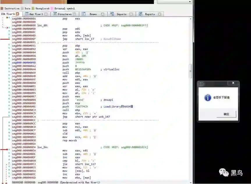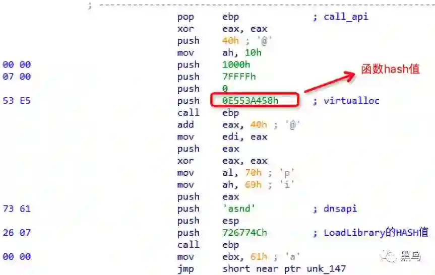 并且不通过函数名字而通过函数名字 hash 值得的方法来获得函数地址,以避免 函数字符串被轻易发现:
