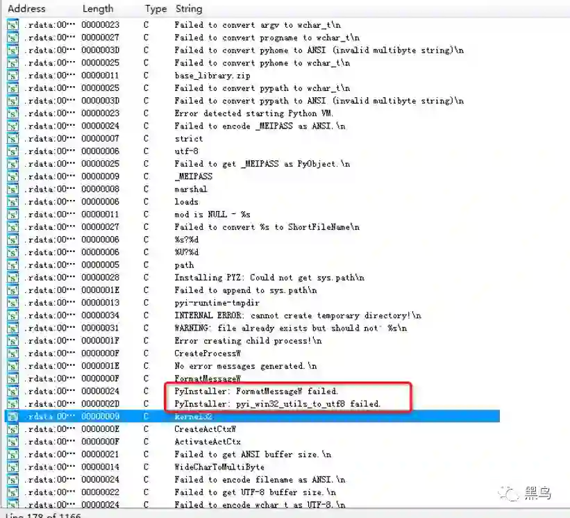 逆向发现pe文件中有pyinstaller的字符串