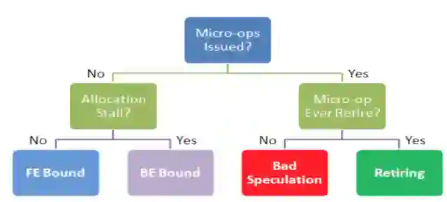 关于 CPI 高的原因分析,在 Intel 64 and IA-32 Architectures Optimization Reference Manual, 附录 B 里有介绍。其中主要的思路就是按照自顶向下的方法,自顶向下排查, 4 种引起 CPI 变高的主要原因,