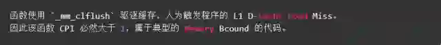 而 memory_bound 是蓝色的,代表这个函数发生了严重的访问内存的延迟,导致了流水线停顿,属于忙等