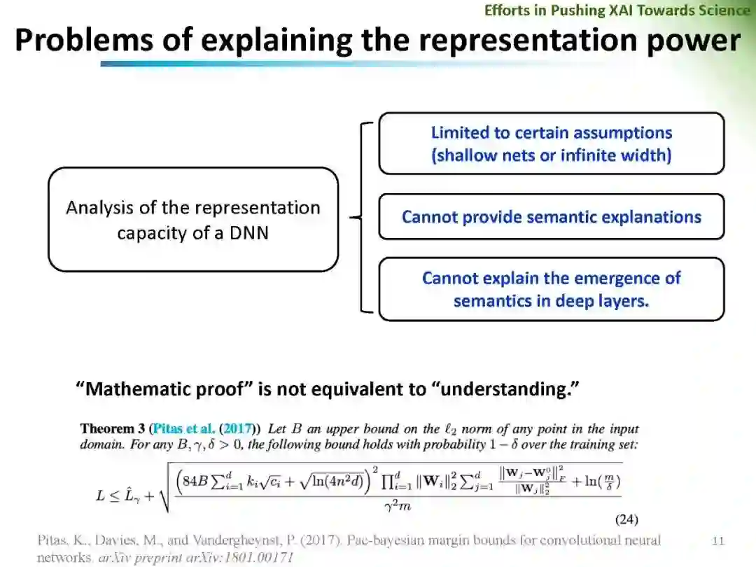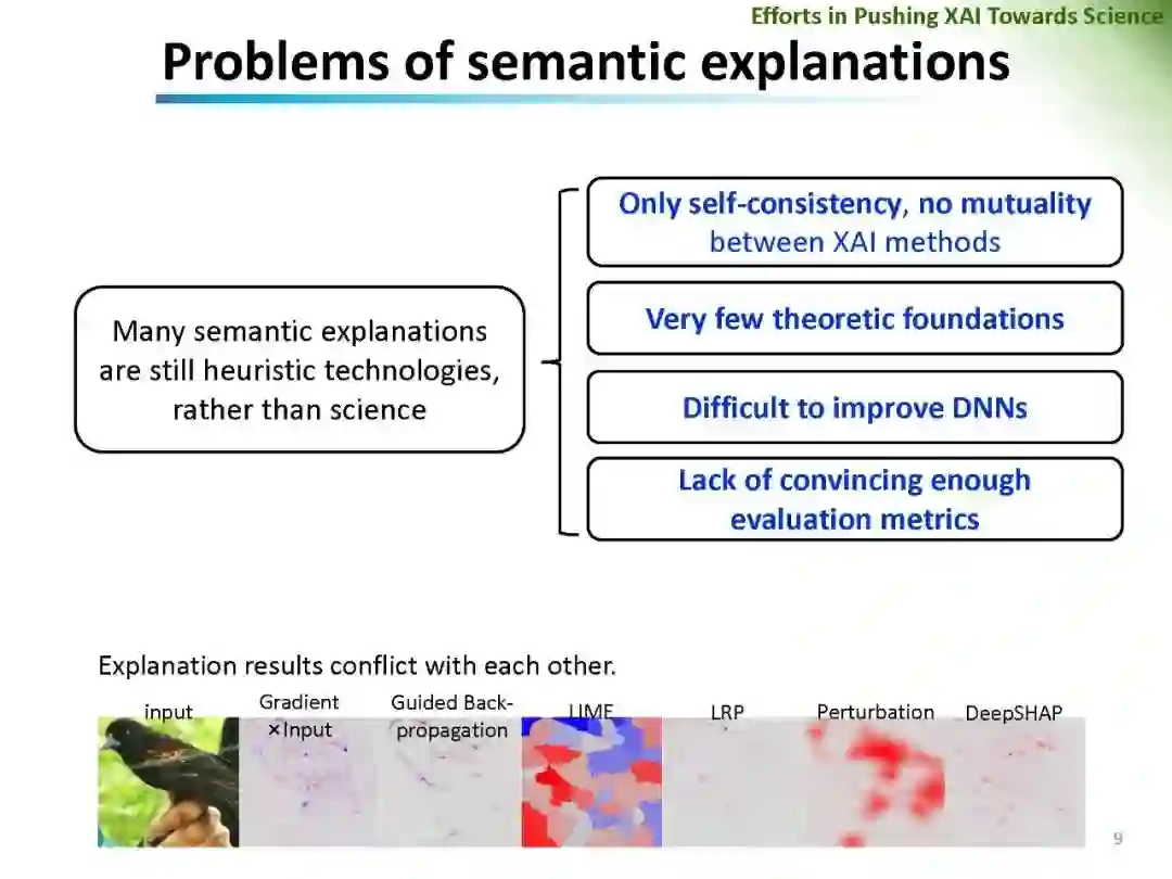 深度神经网络在计算机视觉、计算语言学和人工智能等领域的广泛应用无疑带来了巨大的成功。然而,DNNs成功的基本原理、DNNs的可信性和DNNs对抗攻击的恢复能力仍然很大程度上缺乏。在可解释人工智能的范围内,对网络预测解释可信度的量化和DNN特征可信度的分析成为一个引人注目但又有争议的话题。相关问题包括: (1)网络特征可信度的量化; (2)DNNs解释的客观性、鲁棒性、语义严谨性; (3)可解释神经网络解释性的语义严谨性等。重新思考现有可解释机器学习方法的可信性和公平性,对可解释机器学习的进一步发展具有重要的价值。